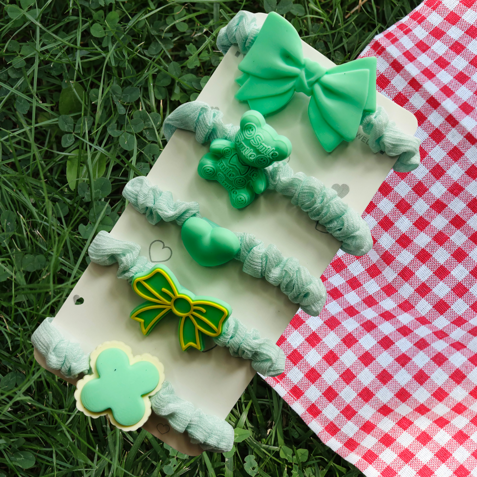 Discover cheerful styling with the Happy Charm Hair Ties, a playful set of elastic bands featuring smiley bears, bows, hearts, and clover accents perfect for kids and trendsetters. Each band offers secure stretch and easy comfort, making them ideal for ponytails, braids, or half-up looks that stand out on social media and at school. The cute motifs and vibrant shapes capture current accessory trends, keeping hair both stylish and managed all day.