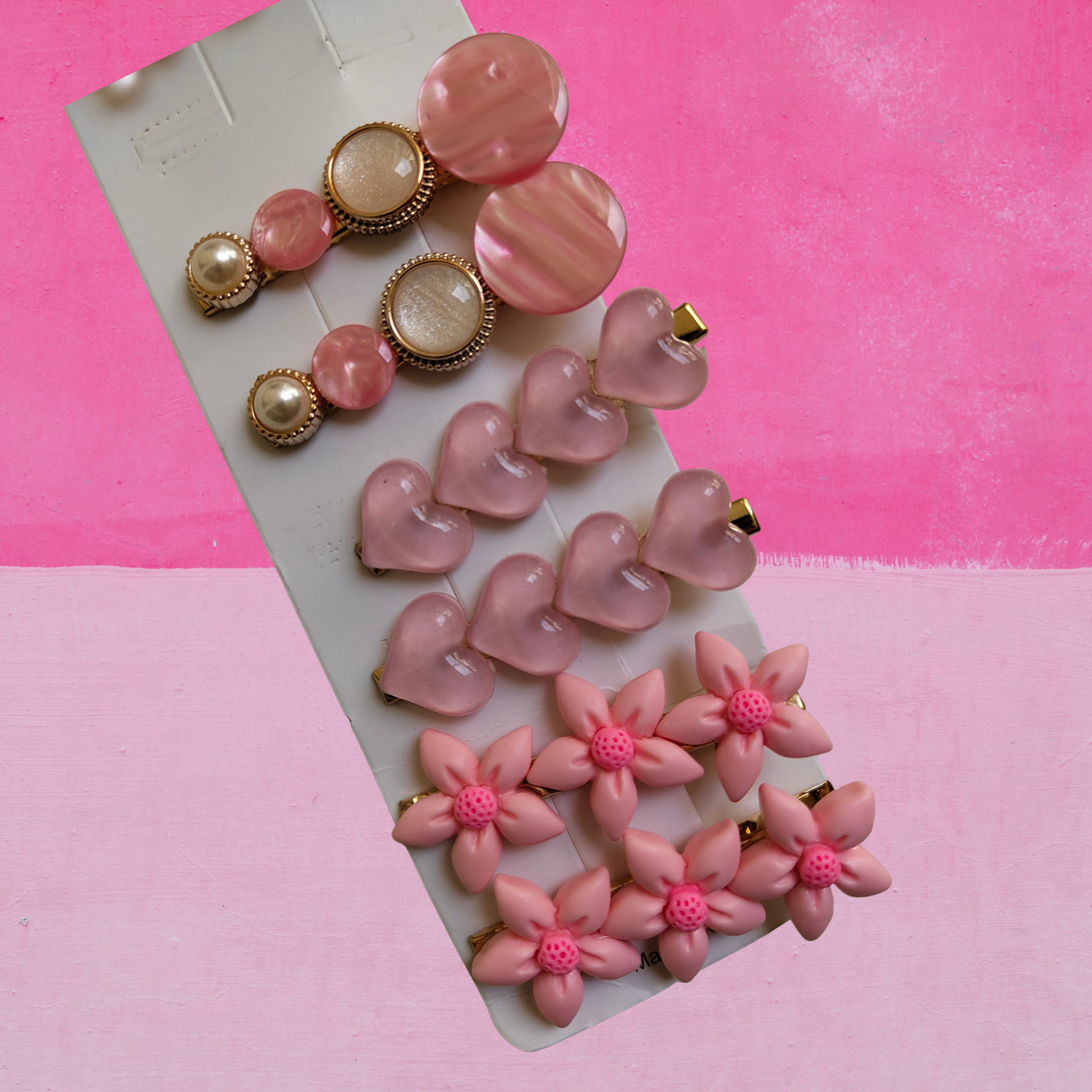Elevate your hair game with our exquisite 12-piece Yeoja Assorted Hair Clip Set, a must-have collection of stylish and trendy hair accessories for women and girls. Inspired by the latest Korean fashion style, this delightful pack features a perfect blend of lustrous faux pearls, sparkling crystal rhinestones, and sleek metallic designs in classic black and elegant gold tones.
